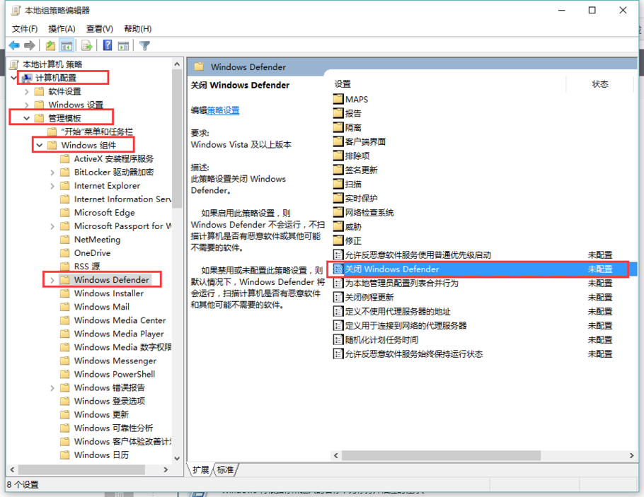 Win10组策略打开或关闭Windows Defender 关闭方法: 1. 2. 3. 4. PC PC Win10 关于新版Unity2018,2017破解失败 显示Pattern not found的问题 上一篇 无线网卡高级中没有Network Address 下一篇
