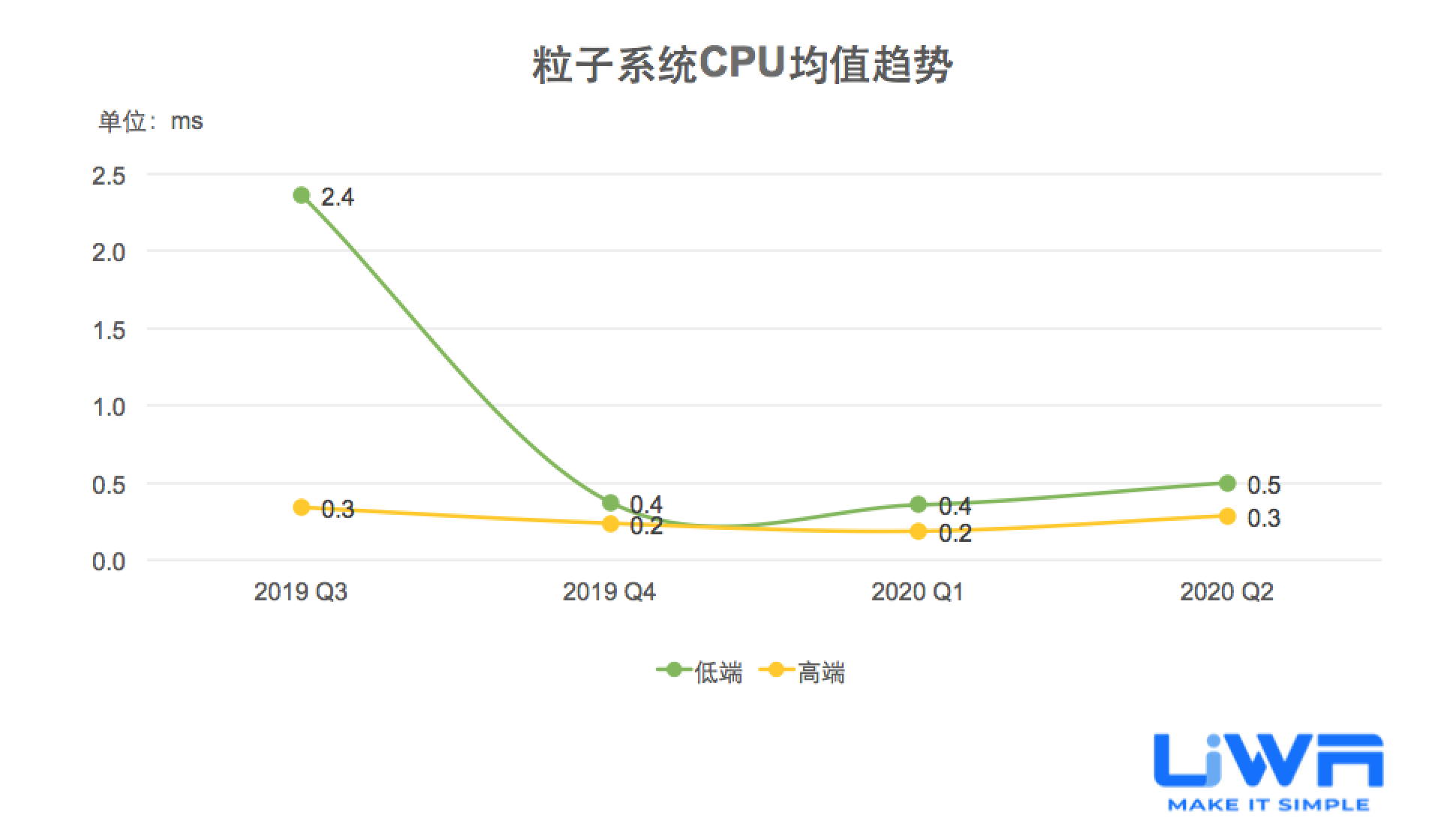 按照UWA官网(www.uwa4d.com)的测评机型分类,我们将统计的性能数据分为低端、中端和高端;在趋势图中则直接以最具有代表性的低端和高端来展现。