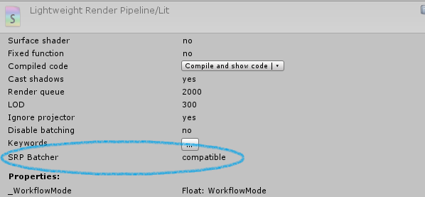 - 您必须使用与 SRP Batcher 兼容的着色器。HDRP 和 LWRP 中的所有点亮和未点亮着色器都符合此要求。