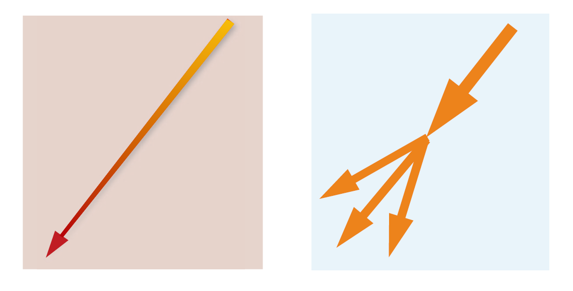 图 光与物质之间的两种相互作用模式:吸收absorption(左),散射 scattering(右)