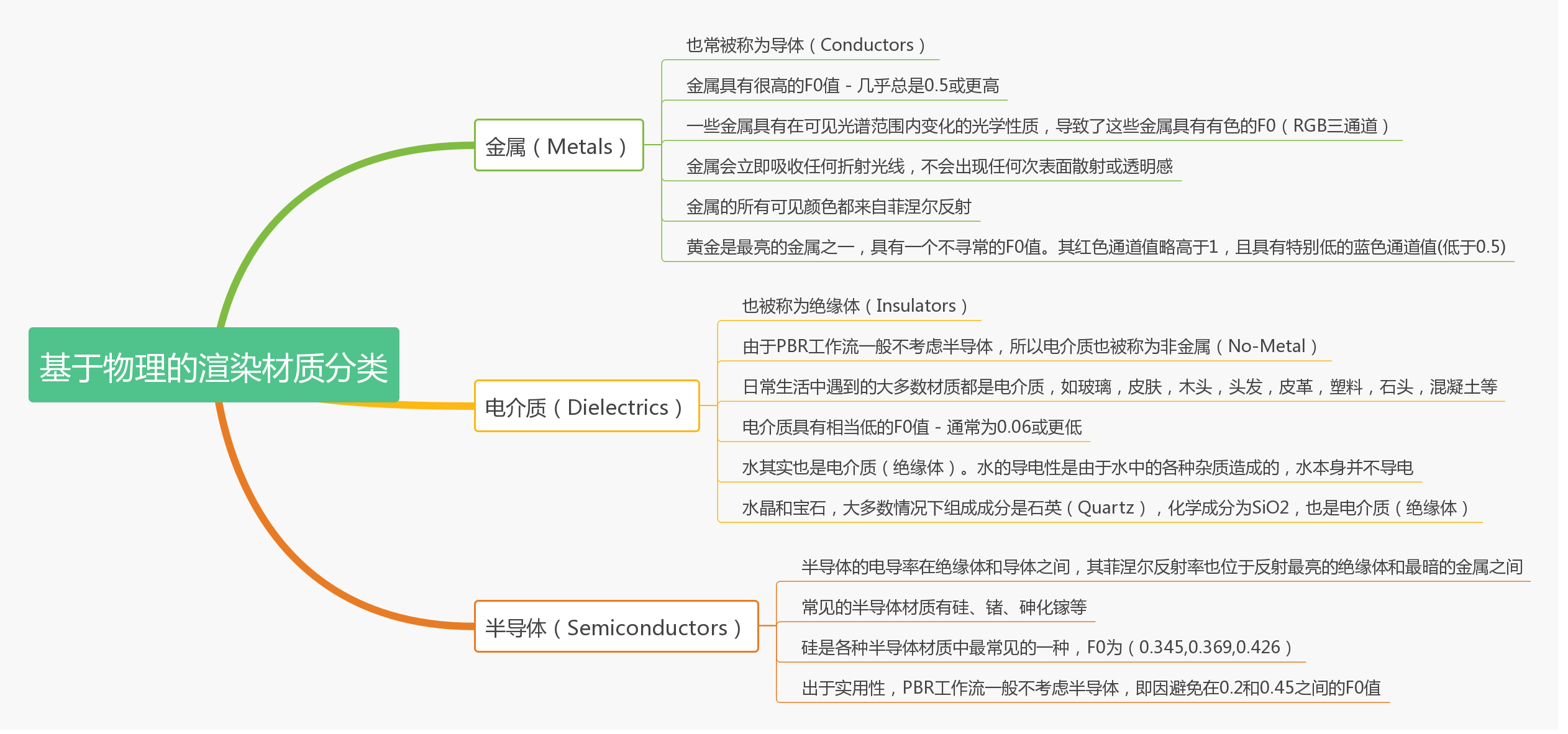 这里,也放出基于物理的渲染材质分类的思维导图:
