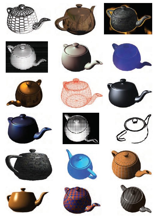 原书图3.9 可编程着色器可以实现各种材料和后处理效果
