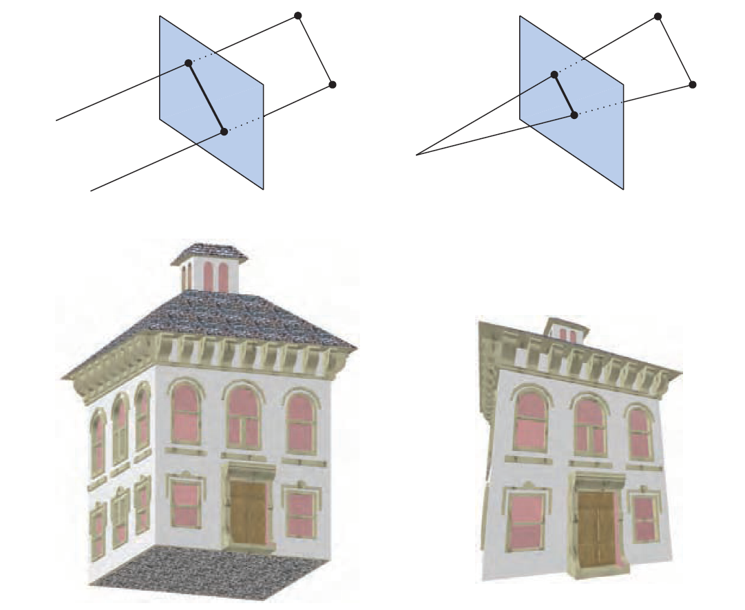 原书图2.5 左边为正交投影,右边为透视投影