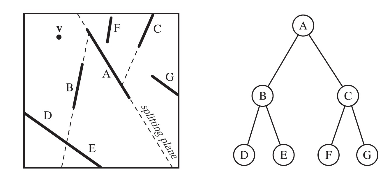 Tree)是一种常用于判别对象可见性的空间数据结构。类似于画家算法,BSP树可以方便地将表面由后往前地在屏幕上渲染出来,特别适用于场景中对象固定不变,仅视点移动的情况。