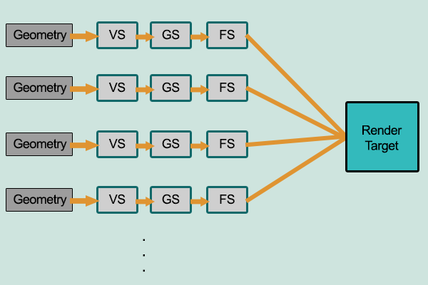 它是相当线性的,并且每次将每个几何图形向下通过管道一次以生成最终图像。