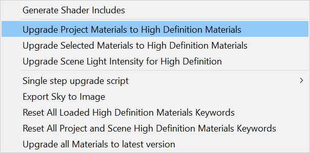 在 Unity 中将项目的材质从内置渲染管线移植到 HDRP 或 URP 相对比较容易,这要归功于 Edit > Render Pipeline > Upgrade… 下的一键材质转换器。请注意,这种操作是不可逆的。强烈建议提前备份您的项目!