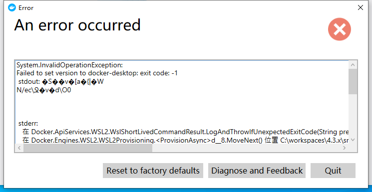 Docker 安装后启动不了,报“参考的对象类型不支持尝试的操作” 报错如图所示: 这个问题跟我上一篇文章的问题相同,解决方法请参考上一篇文章《启动 WSL 2 时报错“参考的对象类型不支持尝试的操作”》。 Docker Docker Unity 手游性能蓝皮书 2020 - 2021 上一篇 启动 WSL 2 时报错“参考的对象类型不支持尝试的操作” 下一篇