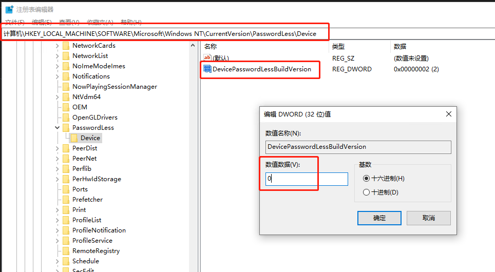 修改注册表 HKEY_LOCAL_MACHINE\SOFTWARE\Microsoft\Windows NT\CurrentVersion\PasswordLess\Device 下 DeviePasswordLessBuildVersion 将当前值十六进制的 2 改为 0,保存并重启电脑即可。